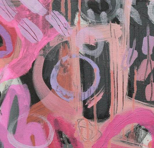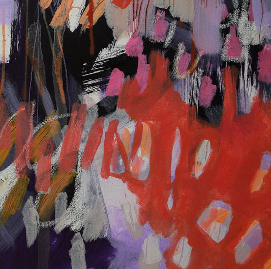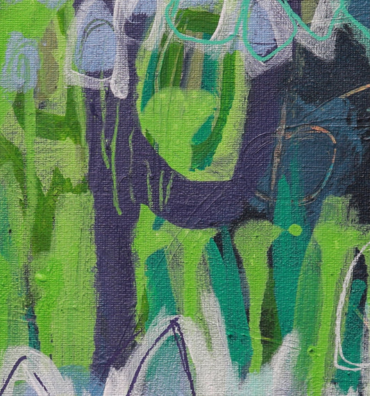 Immerse yourself in the captivating world of Lindsey's "Crazy Abstract Gardens" series, where vibrant splashes of colour and intriguing textures come alive, inspired by the wild and whimsical realms found in nature. Each painting transports you to a joyful, quirky place brimming with imagination and discovery.